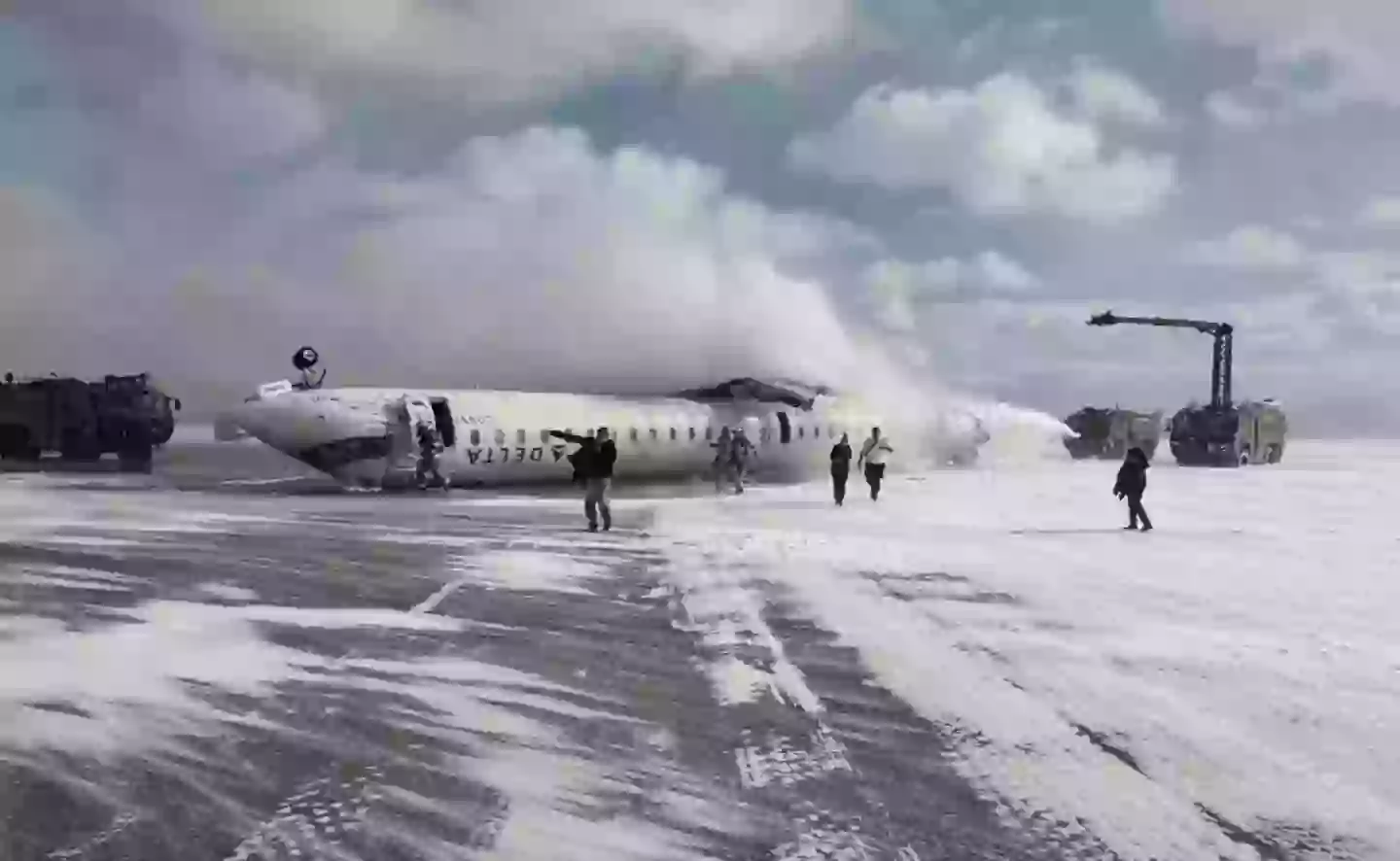 The Delta Flight 4819, which took off from Minneapolis around 11.47am local time, appears to be flipped over on a snowy runway, according to videos shared on social media.